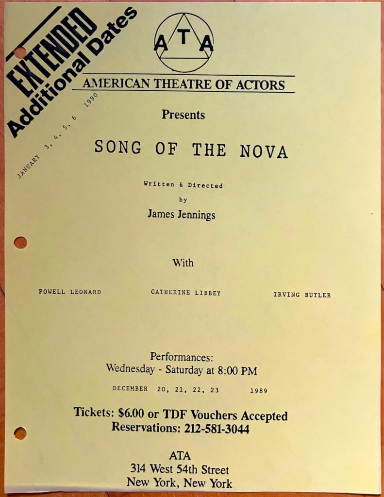 Written and Directed by James JenningsCast: Powell Leonard, Catherine Libbey, and Irving ButlerDec. 20th-Jan. 6th, 1990