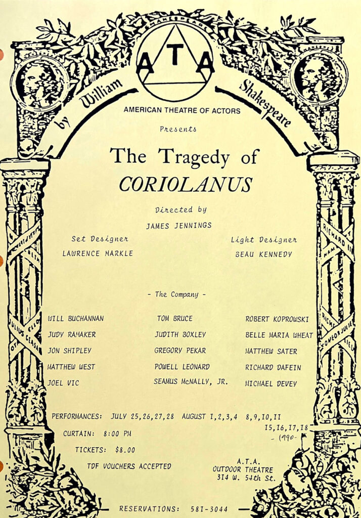 Cast: Will Buchannan, Tom Bruce, Robert Koprowski, Judy Ramaker, Judith Boxley, Belle Maria Wheat, Jon Shipley, Gregory Pekar, Matthew Sater, Matthew West, Powell Leonard, Richard Dafein, Joel Vic, Seamus McNally, Jr. and Michael Devey